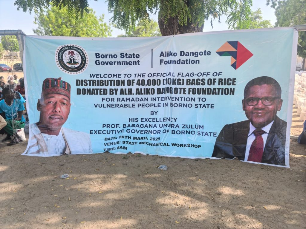 Borno State Governor Prof. Babagana Umara Zulum said the donation of 40,000 bags of 10kg rice to the people of Borno State by the Aliko Dangote Foundation(ADF) will help cushion economic hardship in these families.