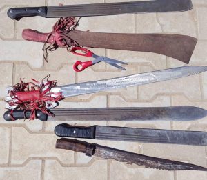 Idris-Abdullahi listed the items recovered to include six cutlasses, swords and a pair of scissors.