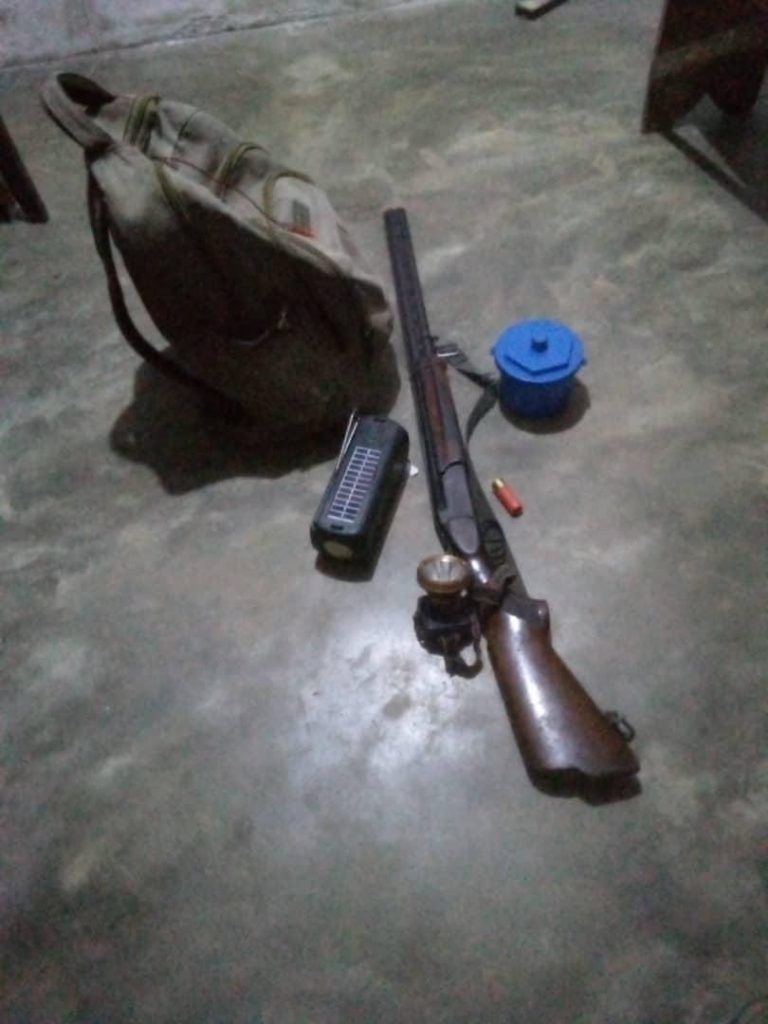 Exhibits recovered:One double-barrel long gun, One cartridge, One torchlight and One traveller’s bag containing clothes.