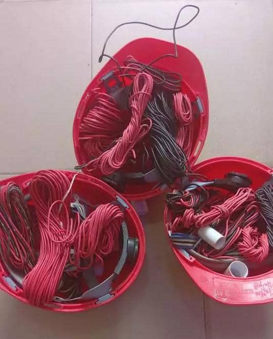 Acting on credible information, the suspects were apprehended while unlawfully removing and concealing electrical wires belonging to the company.